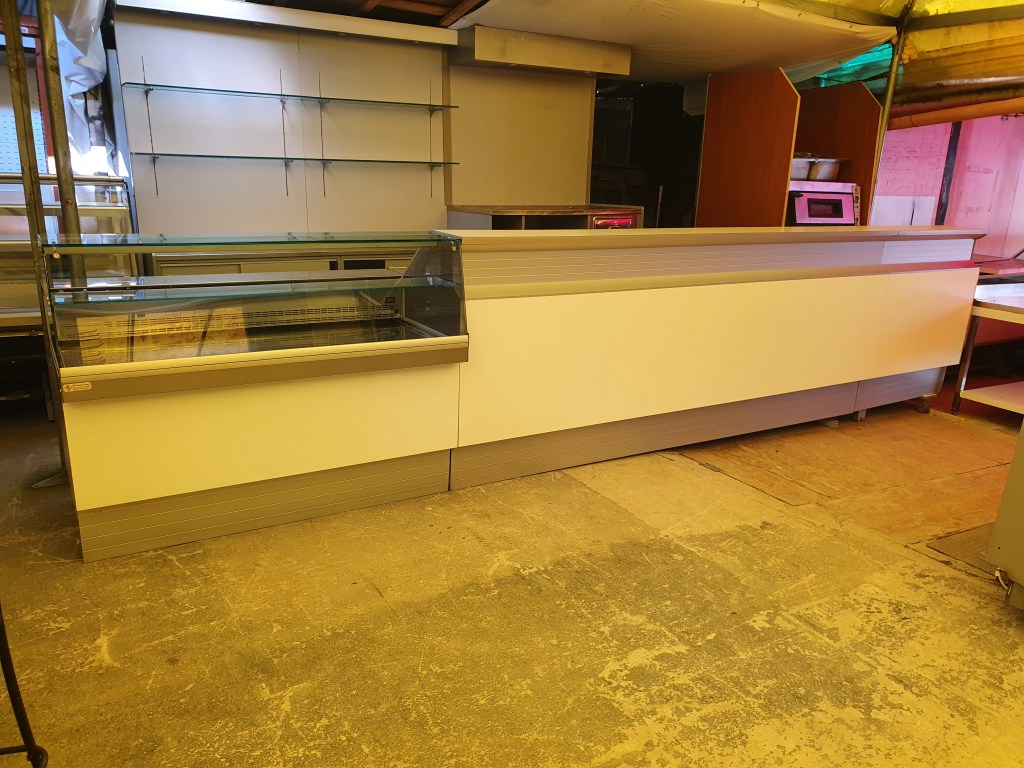 Arredo Bar usato da mt. 6,50 compreso vetrina fredda da mt. 1,50 + retro banco neutro + modulo macchina caffè colore bianco marca SIFA ottimo stato €. 4.800,00 possibilità angolo 90°